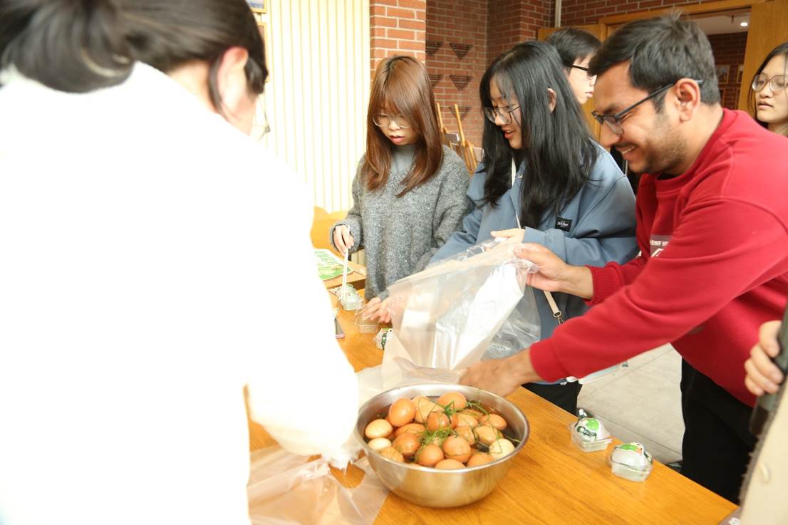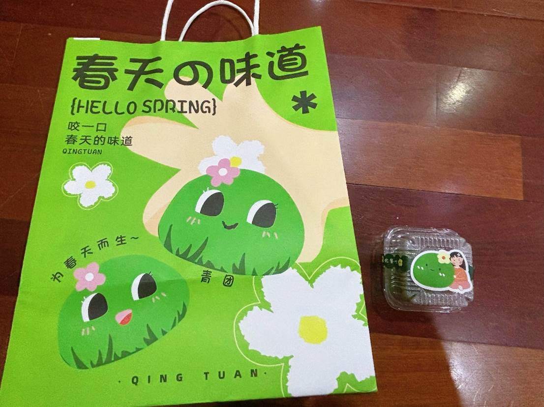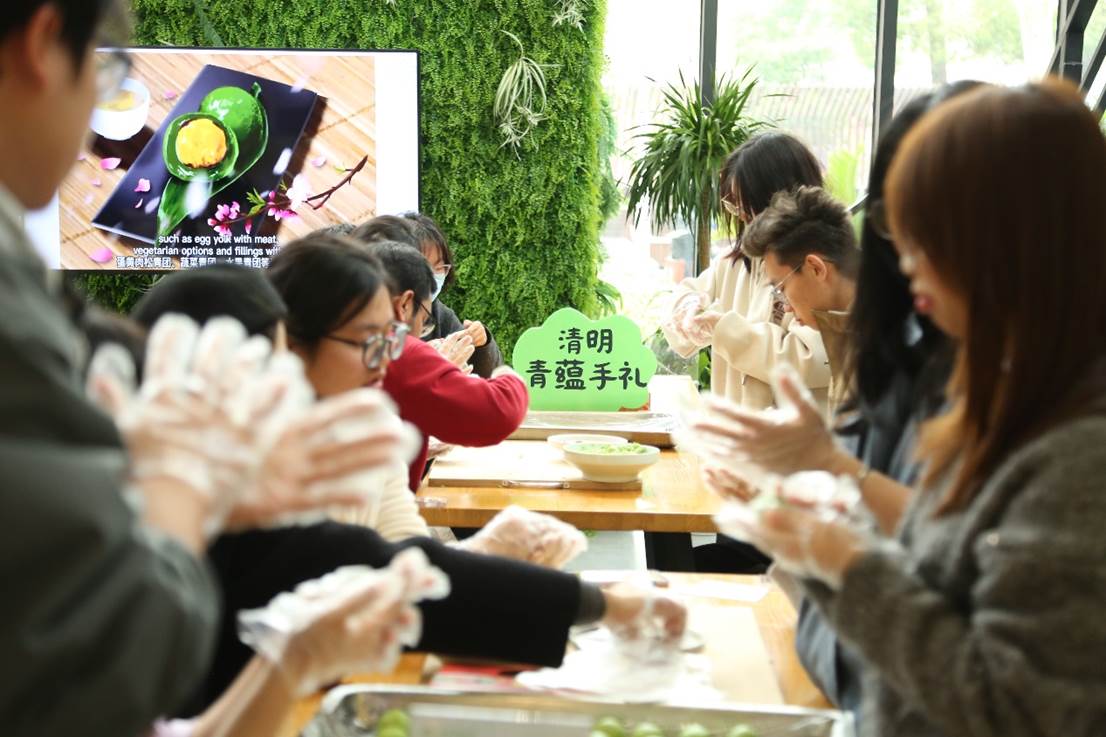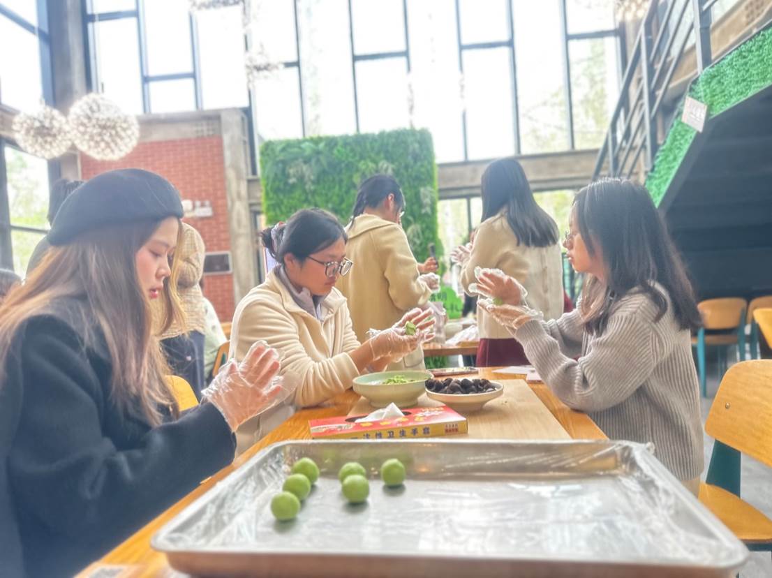 活动当天正逢中国农历中的上元节,主办方精心准备的三月三限定礼物——荠菜煮鸡蛋。马文丽老师为大家讲解了上元节的来源和习俗。同学们在品尝青团和鸡蛋的之后,也将自己手作的青团细心装入礼盒,给好友分享喜悦。手捧春日的馈赠,中外员工携传统滋味与暖心回忆满载而归。