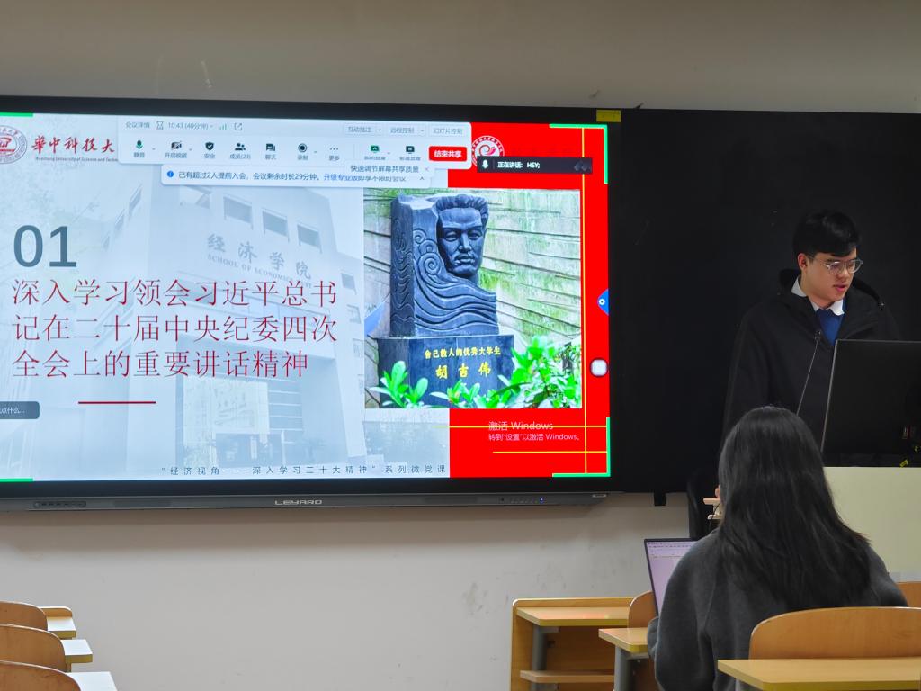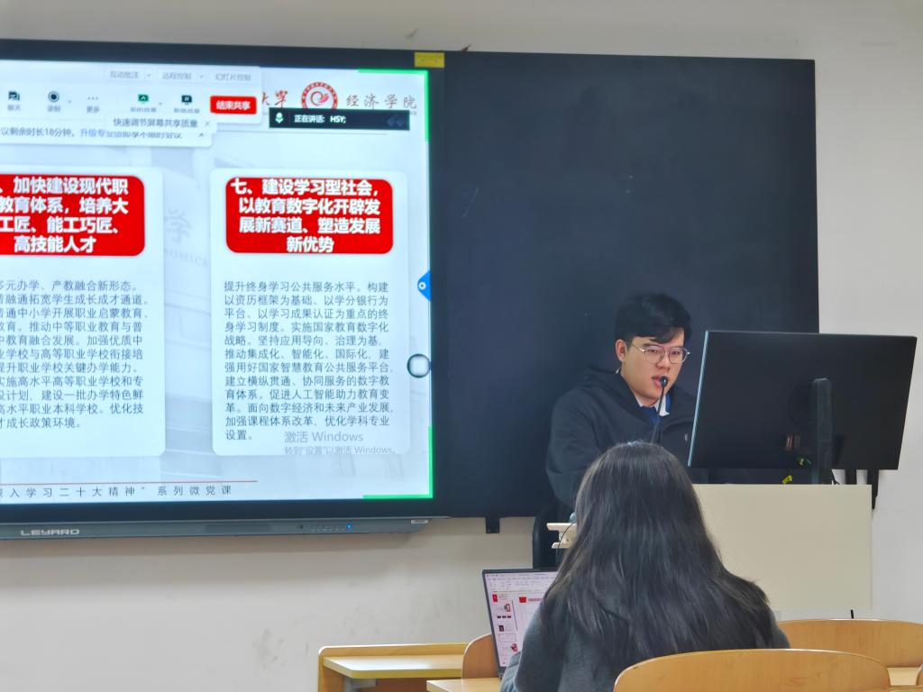 2·024级硕士生第三党支部郭凯铭同志分享党会内容,分别从“深入学习领会习近平总书记在二十届中央纪委四次全会上的重要讲话精神”和“深入学习贯彻《教育强国建设规划纲要》(2024—2035年)”两方面进行讲解。