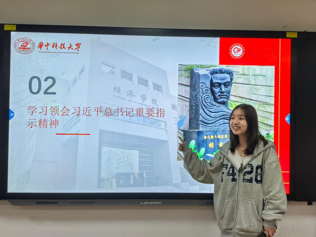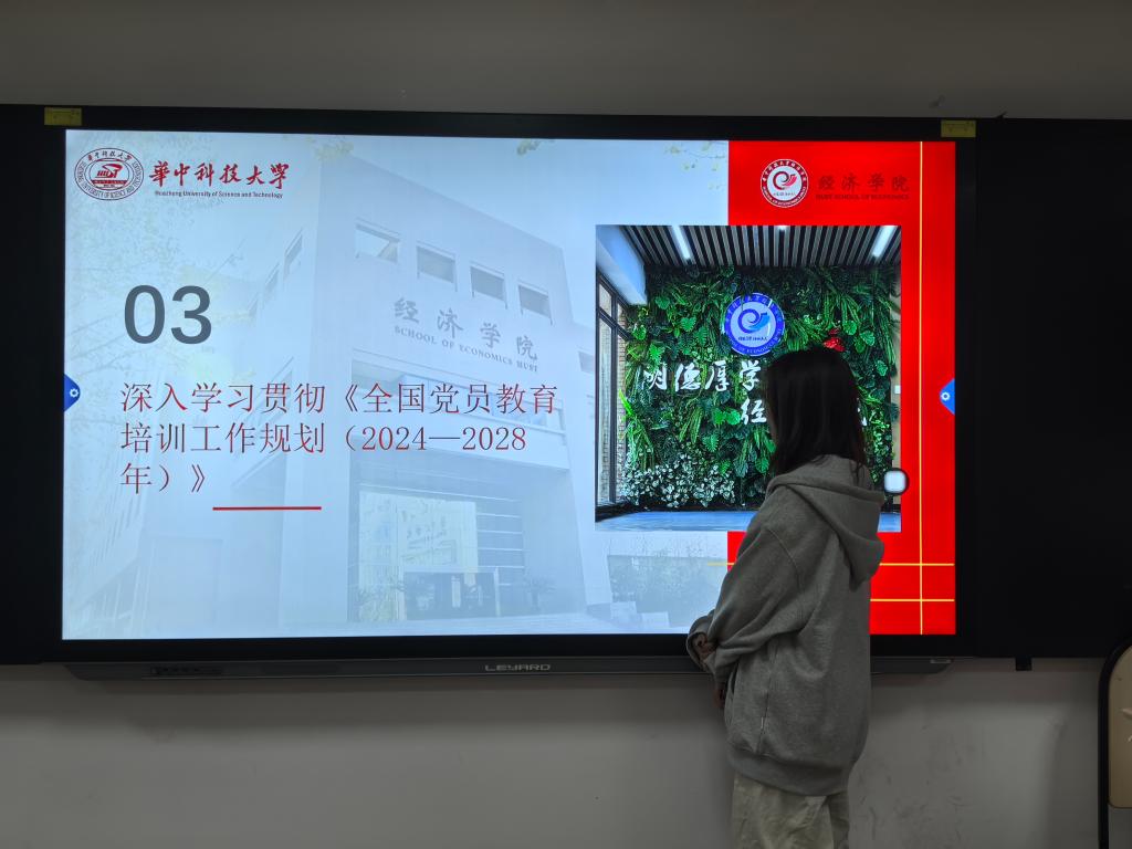 2·024级硕士生金融党支部崔晨洁同志分享党会内容,分别从“深入学习全国两会精神”、“学习领会习近平总书记重要指示精神”和“深入学习贯彻《全国党员教育培训工作规划(2024—2028年)》”三方面进行讲解。