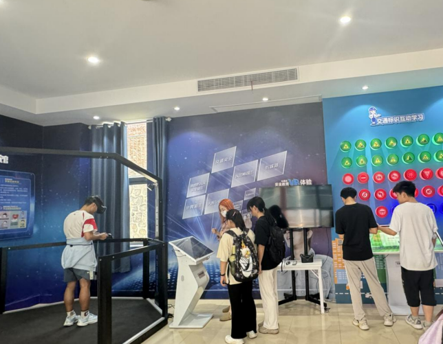 在VR安全体验馆,同学们戴上头戴式VR设备,仿佛置身于火灾、地震等真实应急场景之中。通过先进的模拟驾驶系统,同学们学习了安全驾驶技巧,掌握了校内规范行驶准则和私人电动车保养要点,进一步强化了交通安全意识。