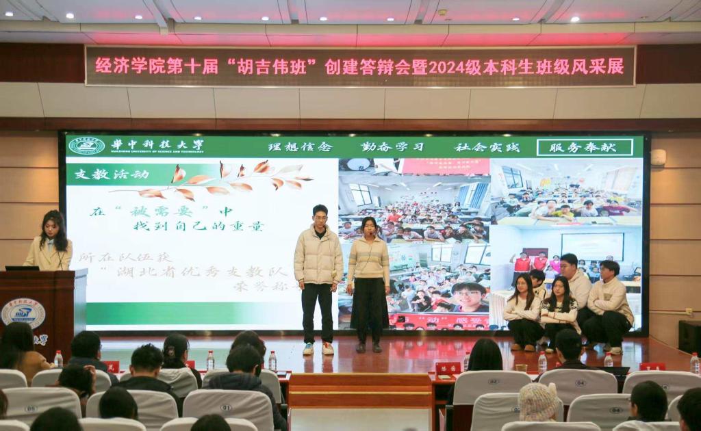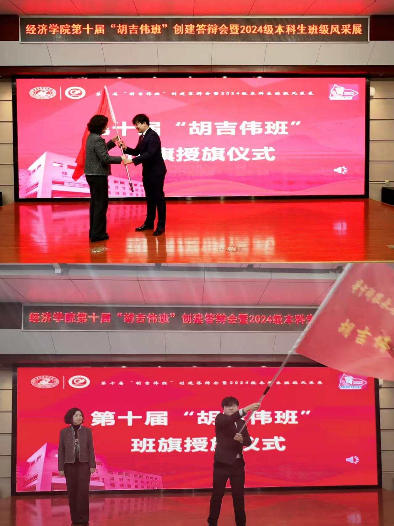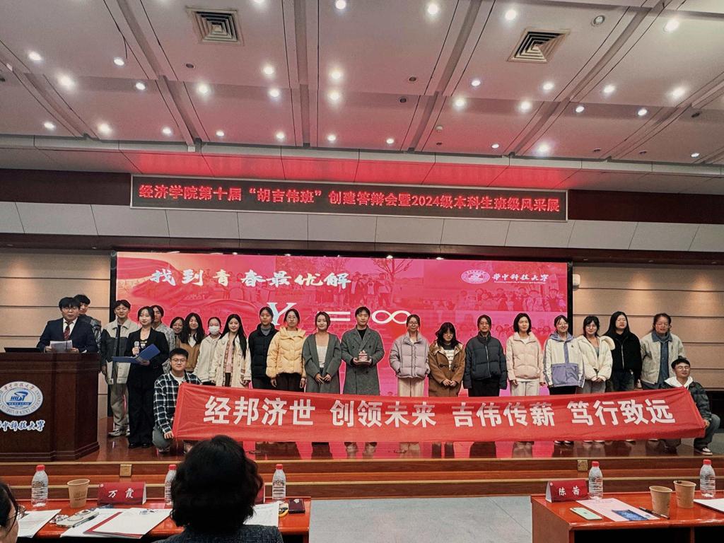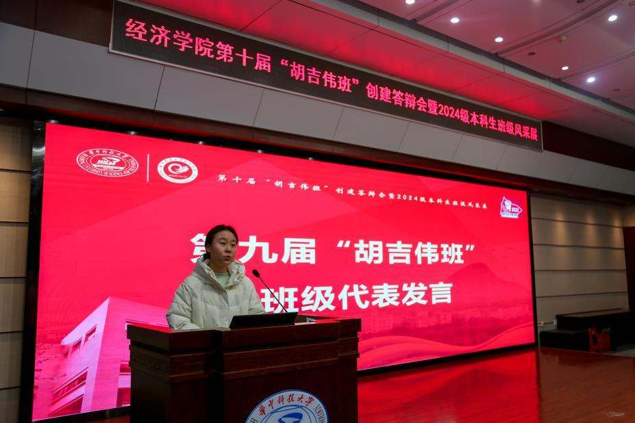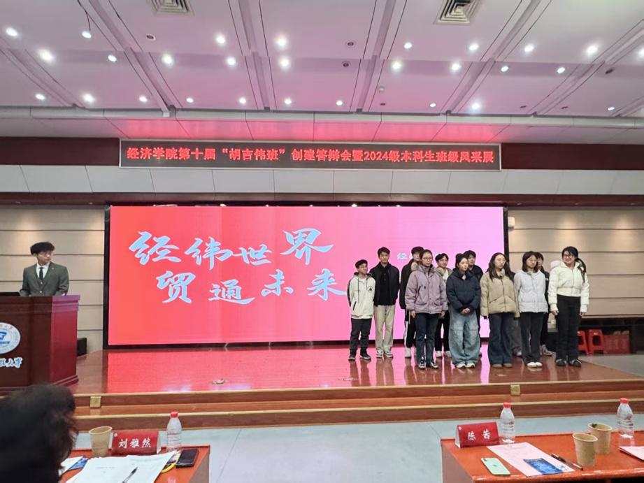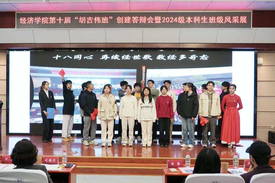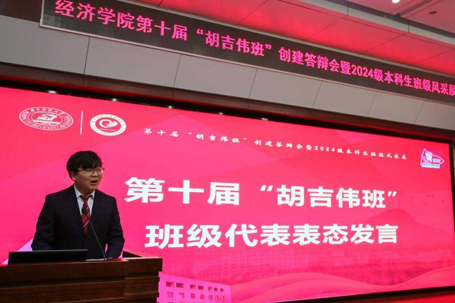 经过激烈的角逐,以及前期班级申报、材料评分和现场展示,最终经创2401班成为了第十届“胡吉伟班”。班长焦奕博作为代表在表态发言中承诺,新一届胡吉伟班将传承精神作表率、勤学笃行练本领、团结奉献服务集体,以实际行动续写“胡吉伟班”的新篇章。