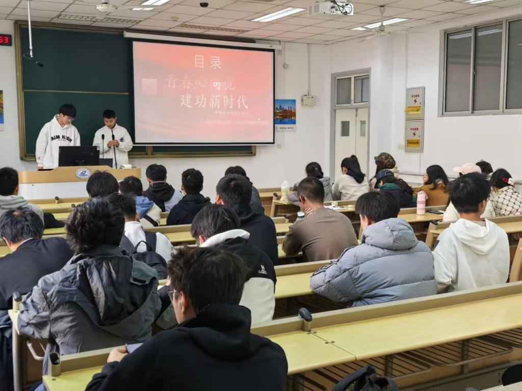 (通讯员:贾怡萱 黄文桦 许晨欢)青春心向党,建功新时代,经济学类2401团支部、光电2405团支部11月21日以“青春心向党,建功新时代”为主题,于东九D219教室联合开展11月主题团日活动。