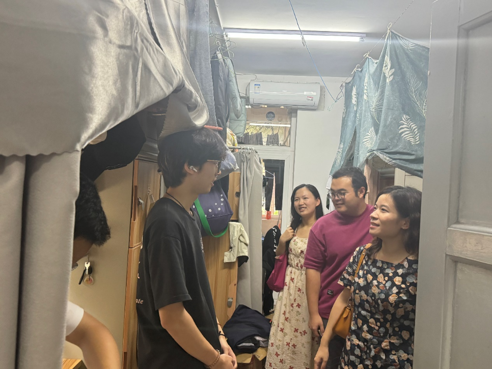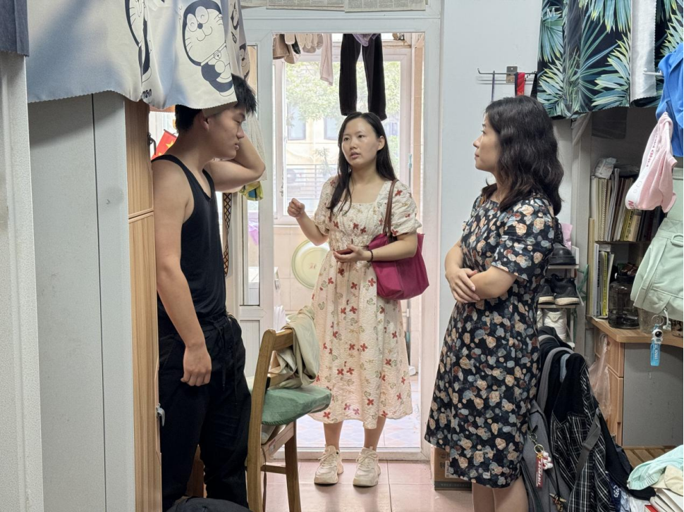 在走访员工寝室过程中,刘雯雯与全体辅导员检查了员工宿舍卫生情况,仔细排查了员工宿舍的安全隐患,强调假期离校和留校期间的防火、用电安全等关键安全事项,确保同学们在安全的环境中生活和学习。同时,老师们询问了同学们假期安排并给出建议,针对同学们即将开展的暑期社会实践调,老师们提醒大家注意离校途中交通和人身财产安全,鼓励员工们在保证安全的前提下,积极参加社会实践,在实践中收获成长。