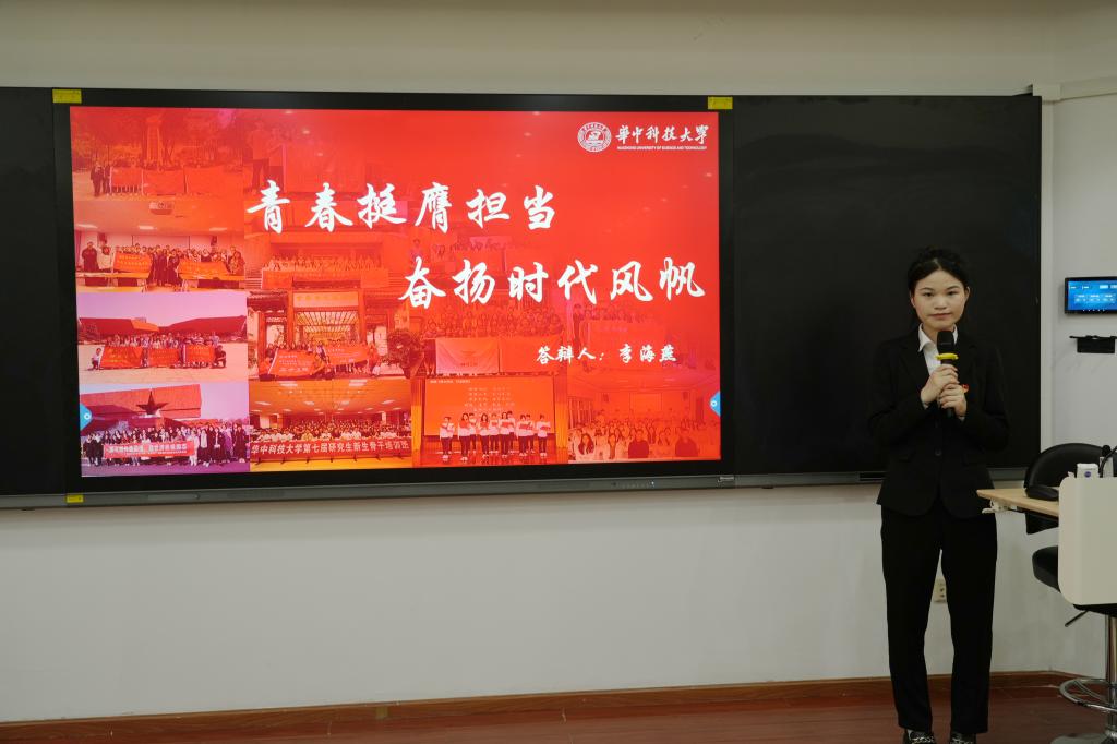 经自主申报、材料评审等环节,最终共评选出10位候选人进入现场答辩展示环节。答辩现场,答辩选手们按照抽签顺序,依次围绕思想引领、学习优秀、责任先行、实践创新、助人帮扶五个维度进行工作汇报与成果展示。