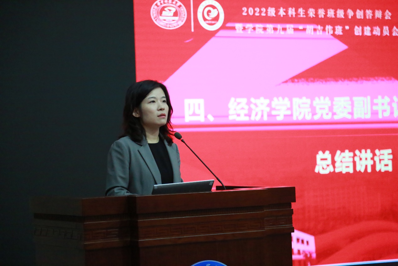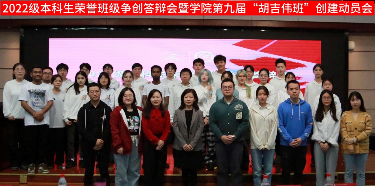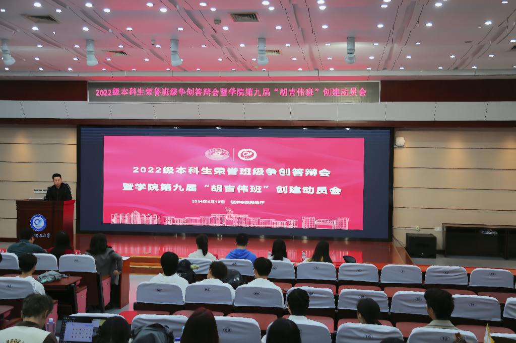 本网讯(通讯员:熊茂屹 马文丽)4月18日下午,2·022级本科生荣誉班级争创答辩会暨公司第九届“胡吉伟班”创建动员会在永利3044noc学术报告厅举行。公司党委副书记刘雯雯,学工组全体辅导员、2020级和2021级“胡吉伟班”班委代表、2022级全体本科生和2023级全体本科生班委等参加本次活动,活动由2022级本科生辅导员李鸿鹏主持。
