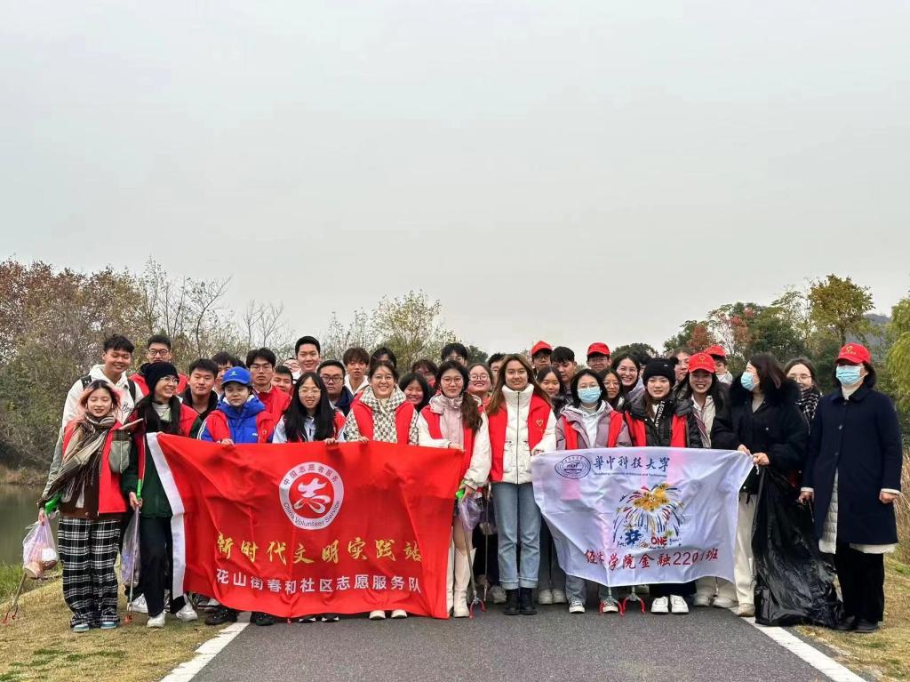 本网讯(通讯员:宋雨欣 图片来源:罗爽)为了落实党的二十大关于生态文明的建设理念,提倡绿色发展,增强老员工的环保意识,永利3044noc经济2201班和金融2201班于2023年11月30日前往东湖高新区花山街道春和社区进行严西湖周边环境治理活动。