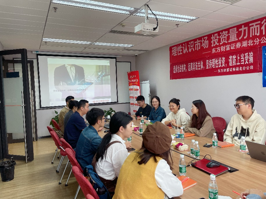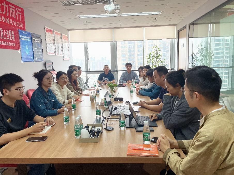 当日上午,师生抵达公司,东方财富证券湖北分公司总经理袁立华热烈接待。袁立华向大家介绍了公司的发展历程、企业文化和主要业务板块。综合管理总监张凯对公司的各个部门和运作模式进行了详细介绍,让同学们对证券公司的内部结构和市场操作产生了更直观的认识。