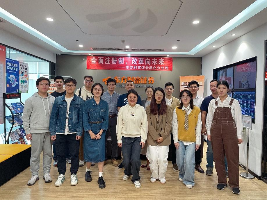 魏杰对此次参观进行了总结,他表达了未来双方加强交流、共同培养金融人才的期望。最后,全员在企业大厅前合影留念,此次东方财富证券湖北分公司的参观活动圆满结束。