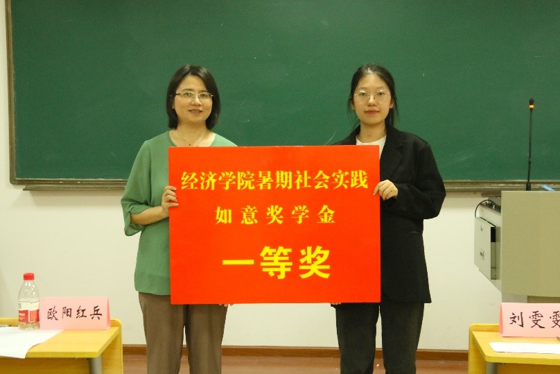 答辩结束,根据前期材料及现场答辩,产生2023年度如意实践奖学金的获奖队伍,各获奖队伍依次上台领奖并与评委老师合影留念。至此,2·023年度暑期社会实践暨如意实践奖学金评选大会圆满结束。