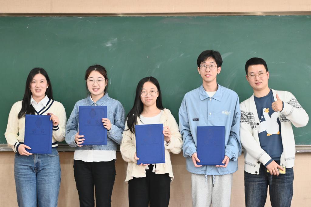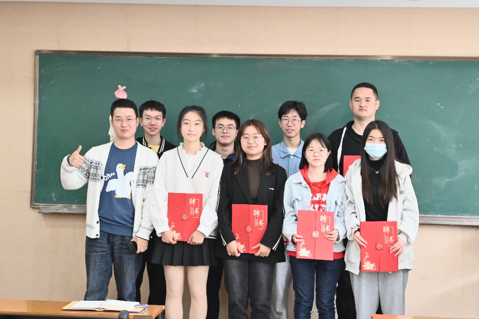 答辩结束,2022级辅导员兼资助辅导员李鸿鹏为各位部长和副部长颁发聘书。