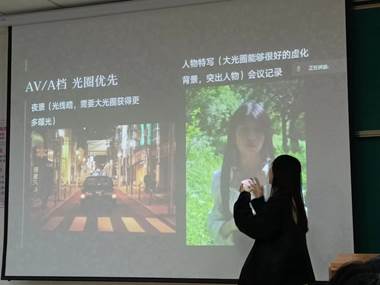 郭奕然对摄影技巧例如参数的调节,光圈的设置以及模式的选取等进行了详细讲授,并在最后进行了选取入门摄像机的推荐。