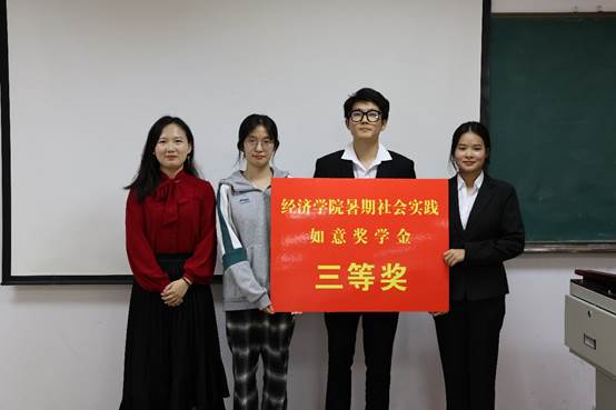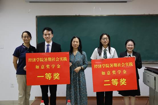 答辩结束后,结合前期材料得分和现场答辩得分,产生了2022年度如意实践奖学金的获评队伍,各获奖队伍依次上台领奖并与评委老师合影留念。至此,2·022年度暑期社会实践暨如意实践奖学金评选大会圆满结束。