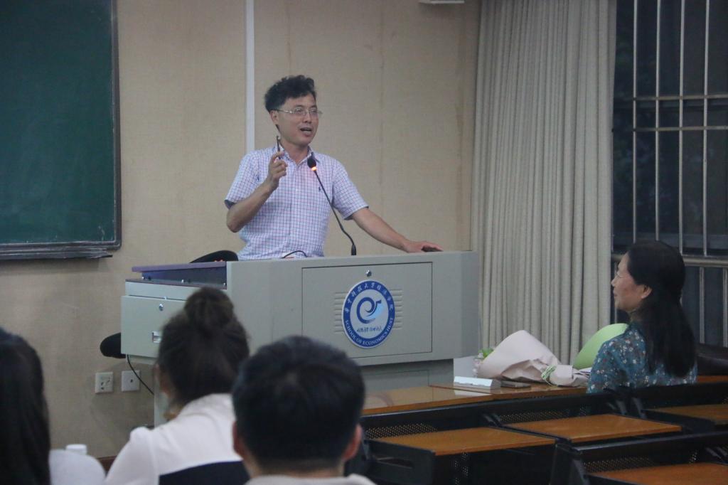 活动伊始,中级宏观经济学老师张玉英老师走上讲台。张老师首先回忆了几名她印象特别深刻的同学,表扬他们学习认真努力,经常刨根问底地问问题。她提到,同学们在大学四年中并没有虚度光阴,因为他们学到了能充实自己的知识,也因此不会担心他们在社会中会遇到解决不了的问题。她很欣慰同学们能设立目标,无论是小目标还是大目标,都能一步一步地踏实走好,完成小目标之后去努力追求大目标。张玉英在最后提出了对同学们终生学习的期望,不管是在深造还是在工作中,都应该完善自身,追求完美。