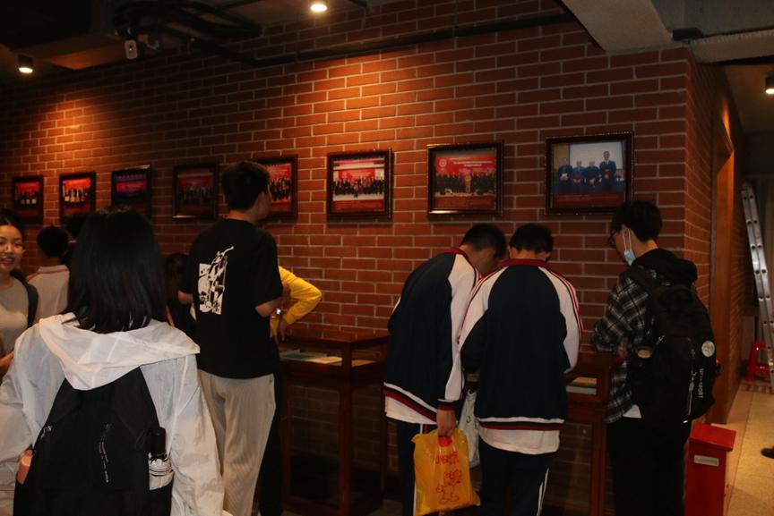 接着,八里湾镇中学师生与“胡吉伟班”同学一起前往参观院史馆。通过事先结对的方式,“胡吉伟班”同学为八里湾镇中学的同学们介绍公司发展历史。