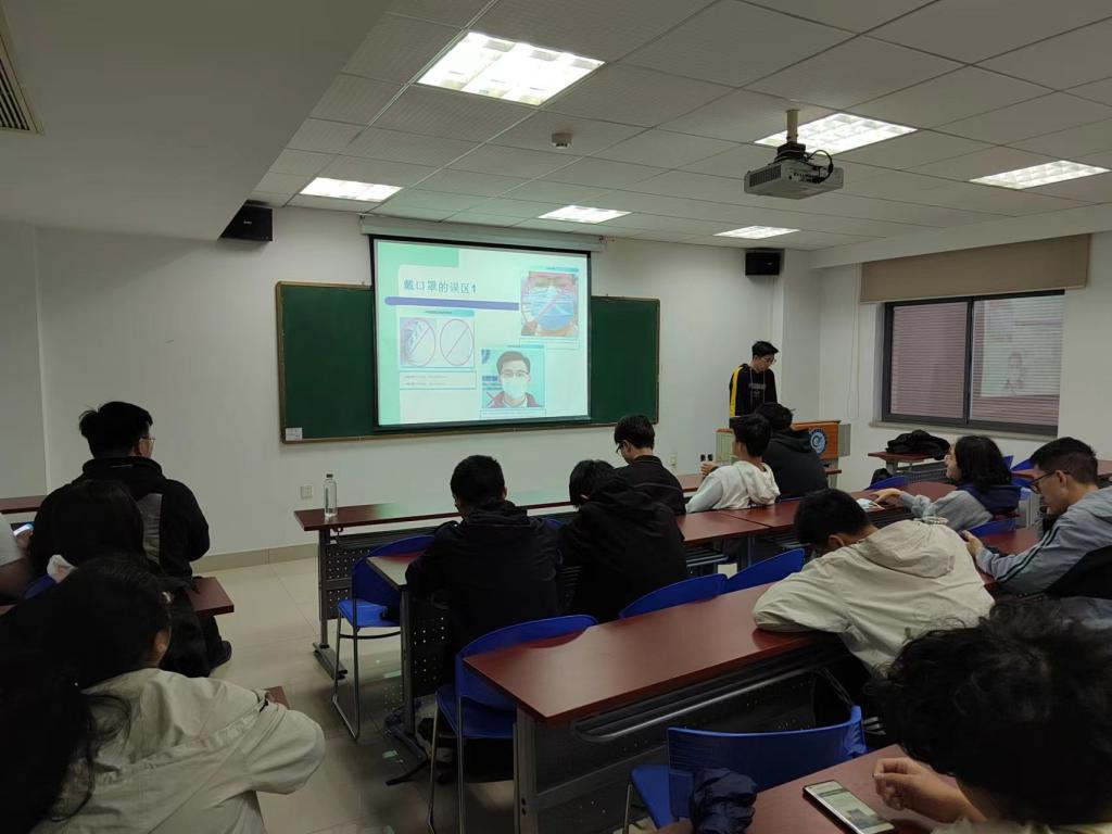 本次班会由班长马春旭主持,他通过PPT向大家介绍了关于新冠肺炎及肺结核的防控知识。首先,他向同学们介绍了新冠肺炎的最新病毒“奥密克戎变异株”的特点,以此强调疫情当前,大家应更加注重个人防护。其次,他带领同学们学习了个人防护知识,小到如何正确佩戴口罩,大到接种疫苗的步骤,让同学们全面深入了解疫情防控措施。接着,马春旭同学通过视频和PPT结合的方式向同学们介绍了校园肺结核防控的要点。会议的最后,他以某公司一起疫情发展事件为例,向同学们分析了现阶段疫情的改进措施。