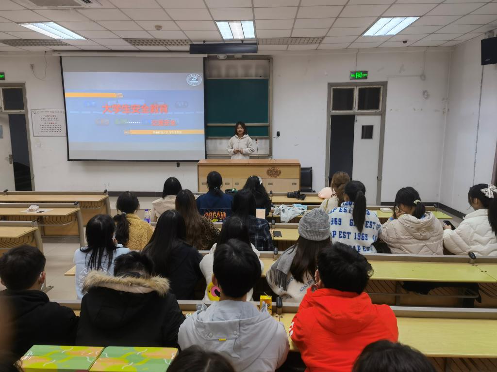 然后班长吴纪霖同学又对交通安全做了详细全面的教育,主要从交通事故展现、交通法规学习、交通安全注意事项等方面进行,同学们积极互动、认真学习,取得了良好的教育效果。