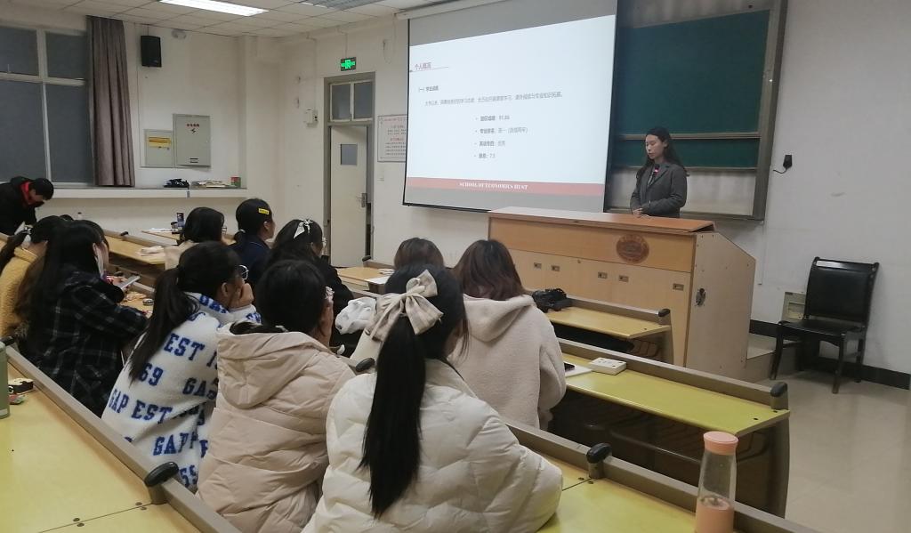 首先,屈诗雨结合自己两年多的老员工活和同学们交流了有关国际商务专业学习、各大竞赛活动、实习活动、社团活动、文体发展、社会公益服务、个人爱好特长等方面的丰富经历,在谈到这些成绩的时候,屈诗雨表示自己付出了很多,熬了无数的夜,虽然很辛苦但是确实收获满满,同时鼓励同学们努力学习,不断实现自我提升。