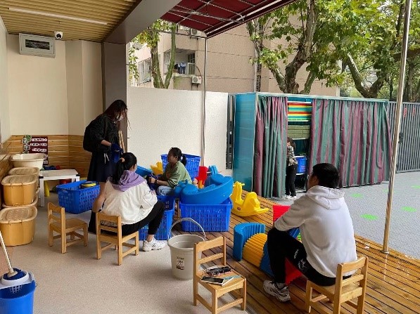 14日下午两点半,虽天气阴沉有雨,但大家都准时到达了集合地点进行了签到,并分为了两个小组,其中一组负责东一园,另一组负责东二园。在同学们进入幼儿园后,负责人详细地分配了任务,于是大家就开始了热火朝天的义工活动。有的义工负责清洁墙壁,有的义工负责消毒玩具,还有的义工负责清点图书并记录。