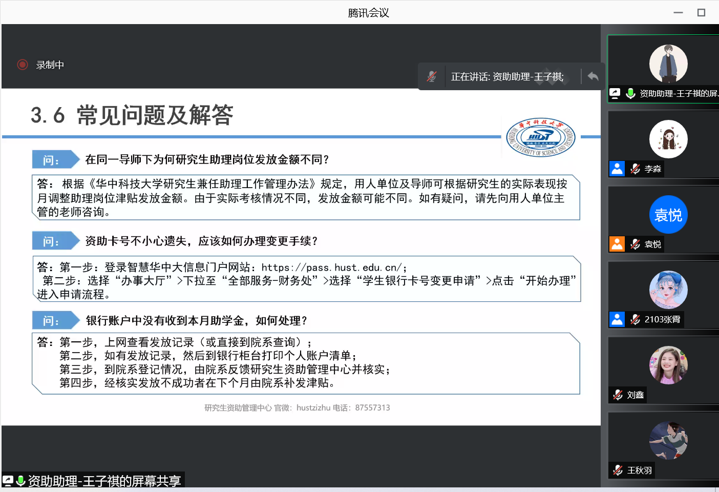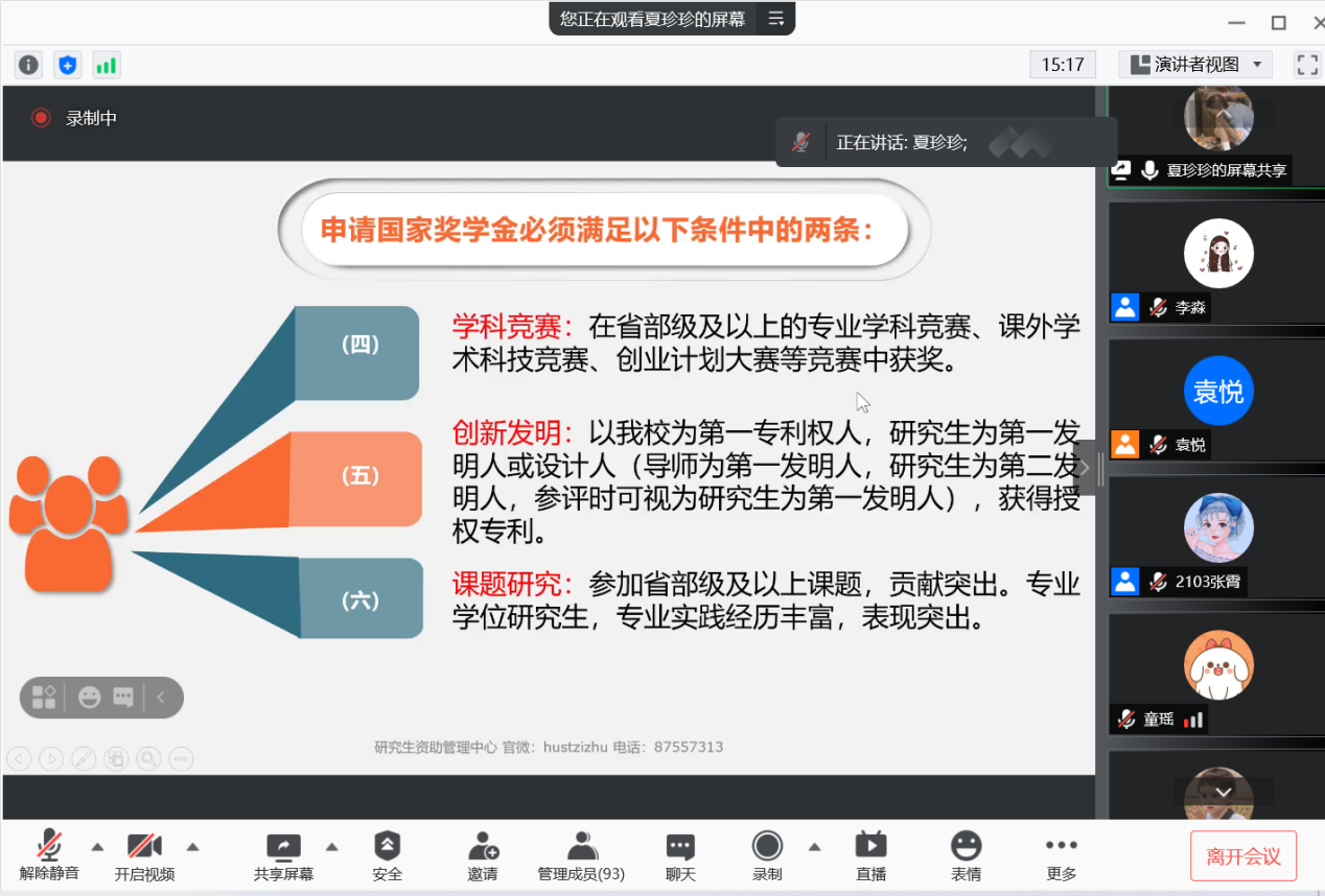 9月11日上午9时,永利3044noc2021级研究生资助政策宣讲大会在线上举行,大会由研究生资助管理中心三位宣讲团成员,辅导员袁悦老师主讲。永利3044noc2021级全体研究生参与了本次大会。