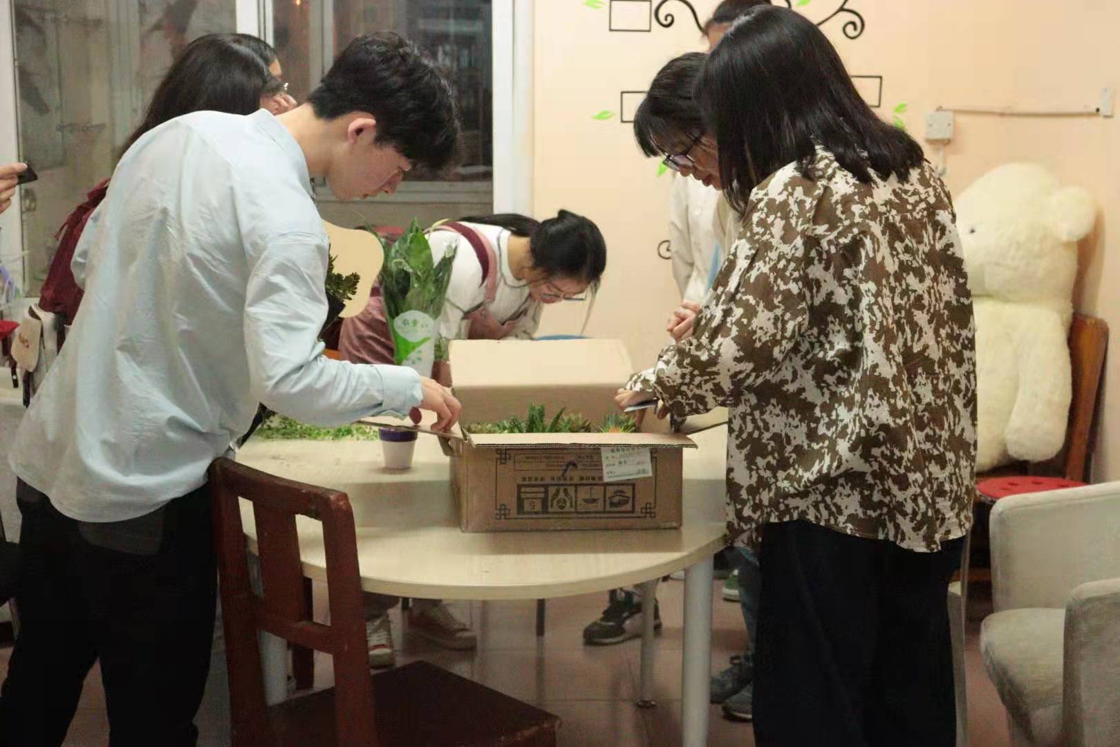 活动前夕,心理服务部负责人袁晓钰提前准备好等待领养的小绿植,并将它们摆成独特的爱心形状,以这样的方式表达爱心和善意。活动正式开始的时候,不断有同学来领养小绿植,并在现场工作人员的指示下登记自己的联系方式,方便后续沟通交流小绿植的生长情况。每个登记完信息的同学都到一旁,耐心倾听工作人员讲解养育植物的注意事项,并认真地记录下来。