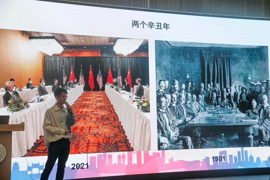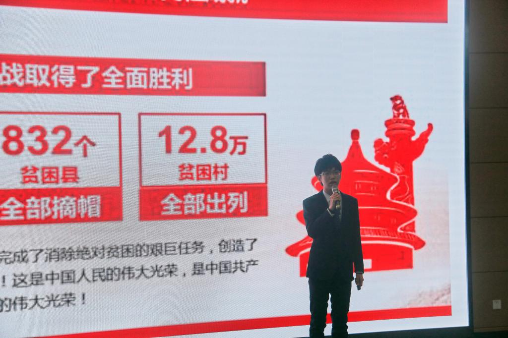 紧接着,十位优秀的演讲者陆续上台。第一位上场的是吴磊,他讲述在五四运动、十四年抗战、新中国建设、改革开放和抗疫时期,都活跃着中国青年的身影,他们在时代的潮流中成长,同时也推动着时代的发展。邹彤表示,作为当代中国青年,我们风华正茂,应该更积极地投身于祖国的建设中。杜同悦将身边发生的故事娓娓道来。党的故事其实存在于生活每一个细节中,而我们能做的便是认真规划好自己的一天,向着梦想的方向努力奋斗。何朋羽表达着看到母亲的请战书和抗疫背影后的骄傲与自豪。张凯列出全面脱贫成果的相关数据,以及永利3044noc的党员员工与教师前往杏勒完小参与乡村教育的具体事例,直观鲜明地展现了青年们义无反顾投身于祖国最需要的地方的奉献精神。