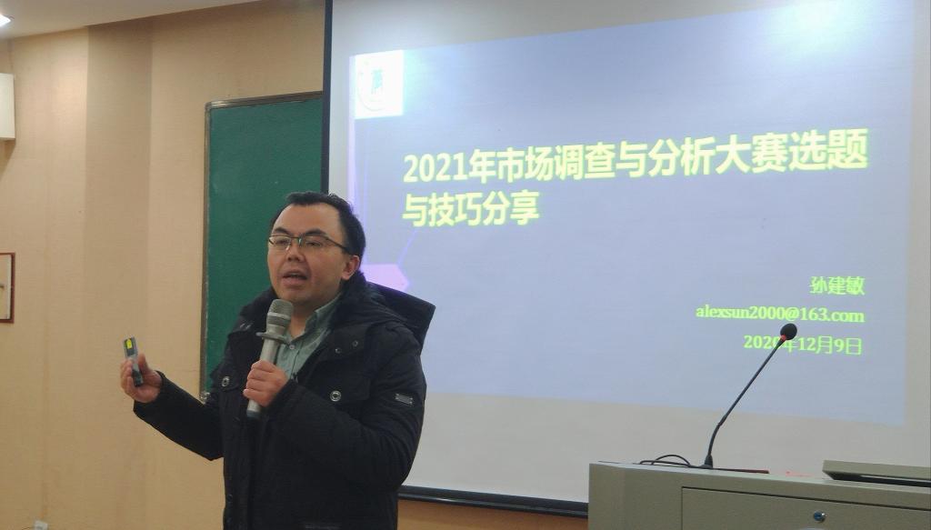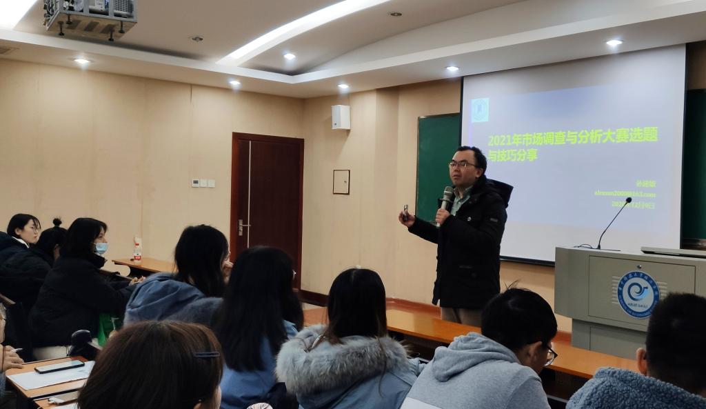 活动开始,永利3044noc团委书记郭宁介绍了本次活动主讲人孙建敏老师,孙建敏老师是2010年至2020年全国市场调查与分析大赛金牌指导教师,长期担任《社会科学与管理》等杂志审稿人职务。本次活动中,孙建敏老师主要向参会人员分享了历年大赛试题和赛制调整,进一步提高参赛人员对赛事活动了解程度。随后,孙建敏老师分享了调研过程中的经验技巧,并从书面调研报告和调研结果展示两个方面,强调了规范性的要求。