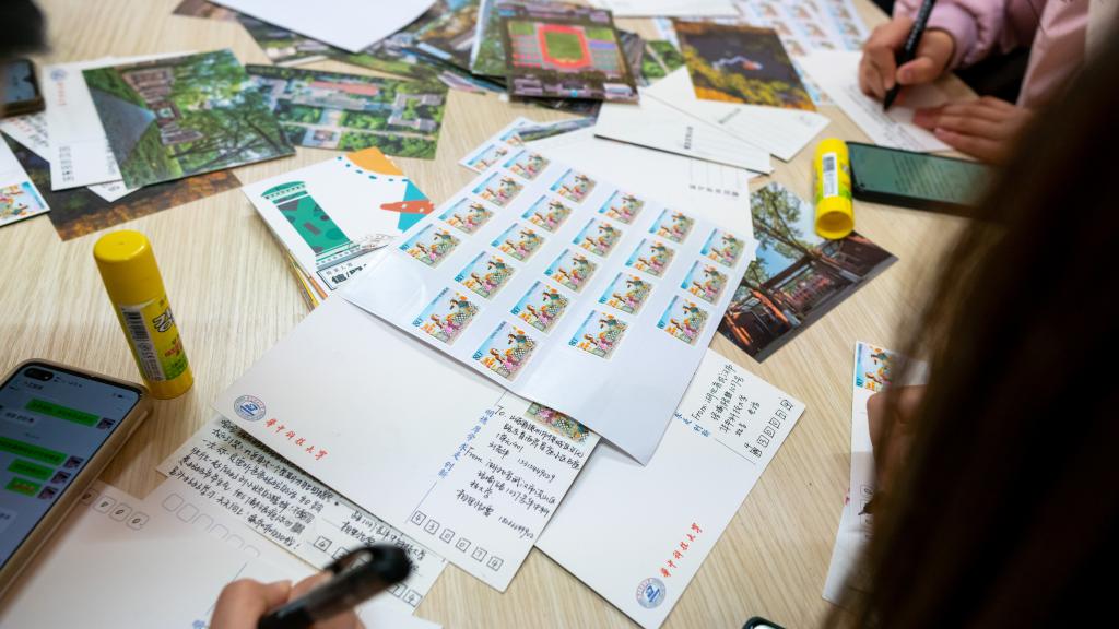 活动伊始,负责人袁晓钰为大家展示了提前准备的华中大原创明信片,以及笔、邮票、胶水等必备物品。心理服务部的部员耐心地为参与活动的同学讲解明信片的具体要求并做示范。随着时间的推移,不断有同学加入到活动中来。同学们在轻松悠扬的音乐中将思念凝于笔尖,用墨香书写牵挂,或是闲谈日常生活的小片段,或是含泪叙写对许久未见的父母的思念。一张张明信片由空白到布满文字,回忆的天窗悄然打开,温暖萦绕在心语室之中。晚8时,活动接近尾声,工作人员小心地整理好寄托着同学们思念与祝福的明信片,待活动后统一寄出。