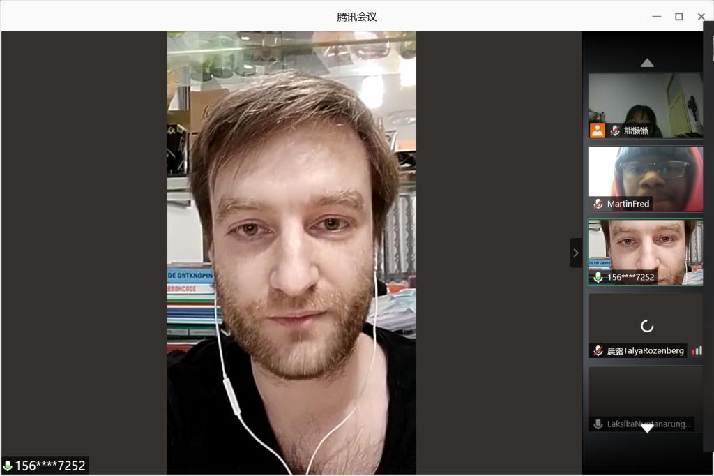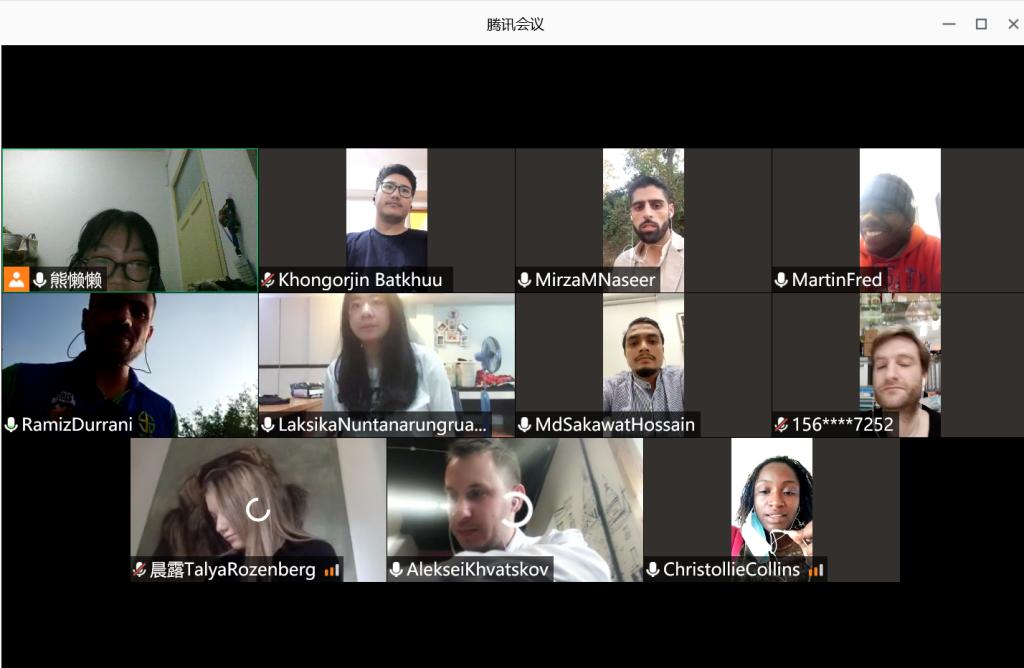 接下来,来自泰国、巴基斯坦、俄罗斯、蒙古、纳米比亚、尼日尔和利比里亚等国的全体新生进行自我介绍。通过网络,身处不同国家、不同时区的新生们相互认识,了解对方。
