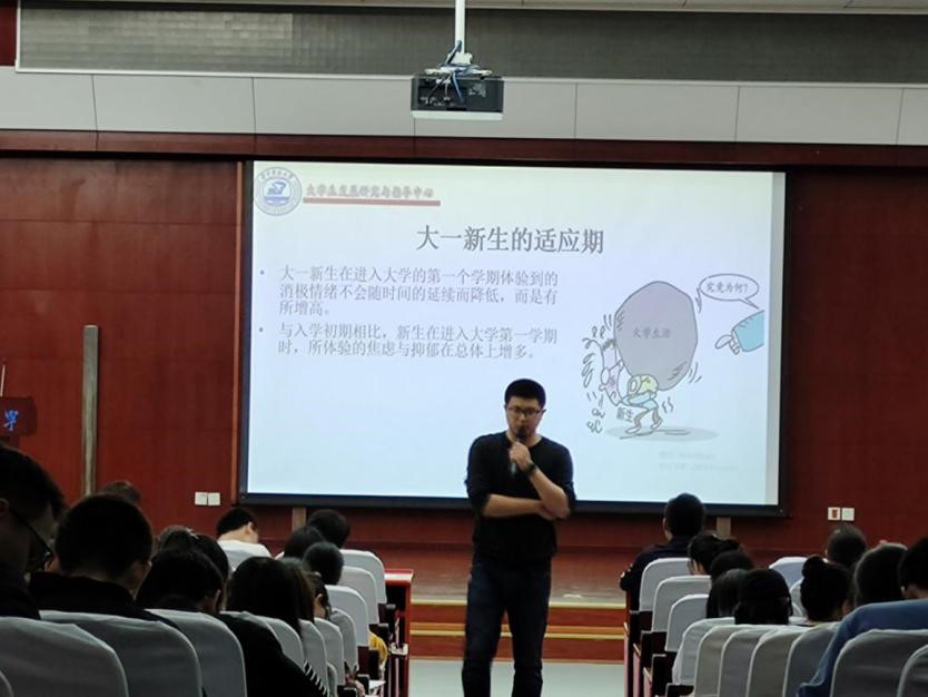 讲座开始,彭鹤翔以一幅风趣的漫画引入主题,说明新生在入学后普遍存在的对大学意义的迷惑,以及可能随之而起的消极焦虑情绪。这种情绪很可能随着时间增长而逐渐加重。