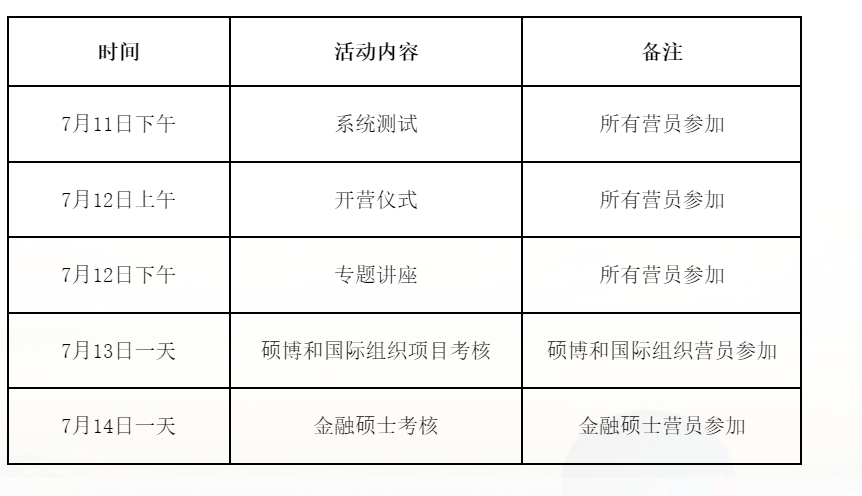 上财的夏令营可以说是参营体验最好的了,老师们态度都很友好,无论是面试的老师还是教务老师(夸夸),整体安排如下
