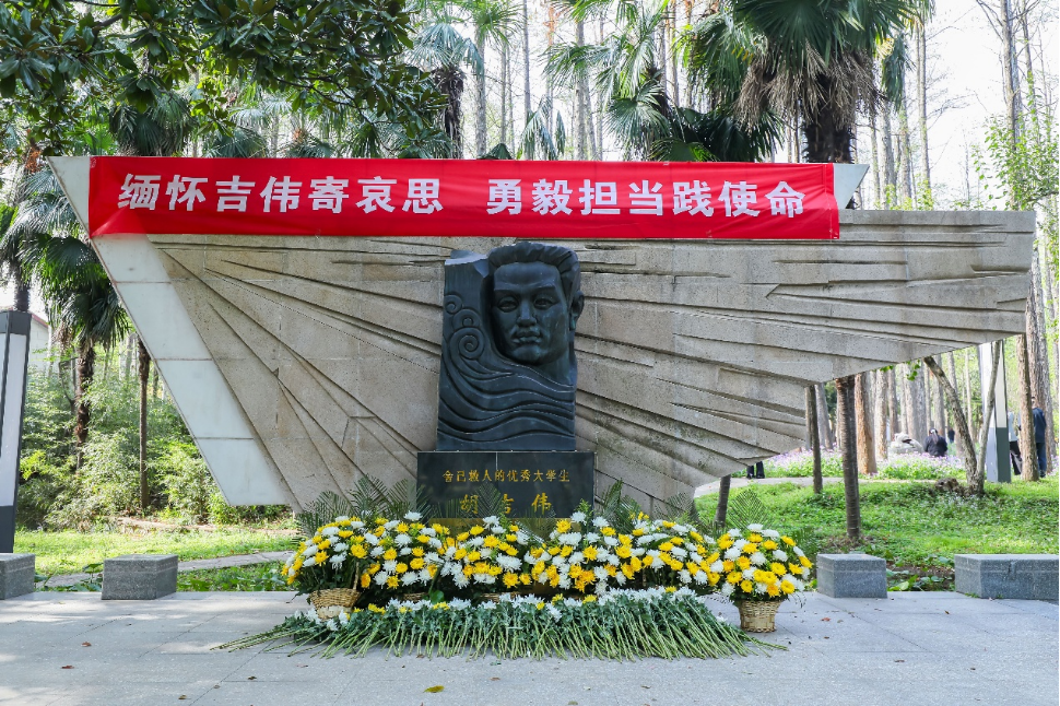 全体人员面向胡吉伟塑像肃立默哀一分钟,表达了对胡吉伟的深切缅怀。