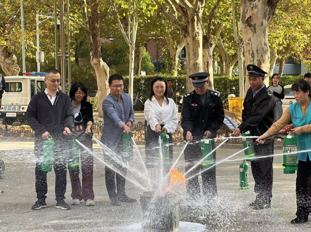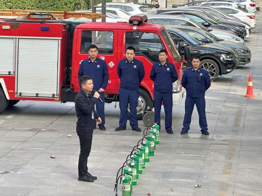 培训结束后,公司师生一同参与了消防演习。蒋卫东详细介绍了常见的灭火器种类和使用方法,并强调了使用灭火器时需要注意的几个关键步骤:首先,迅速判断火势的大小和范围,确保自身安全;其次,正确站立,握紧灭火器的把手,并将喷嘴对准火源;然后,按下把手,用均匀的力道喷射灭火剂,覆盖火源;最后,持续观察火势,确保火灾完全被扑灭。在他的指导下,师生们亲自拿起灭火器,成功将火苗扑灭。此次活动使师生们亲身体验了灭火器的使用过程,有效增强了他们的消防意识和应急能力。
