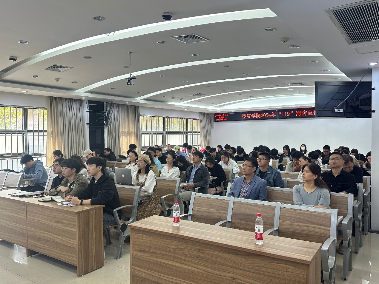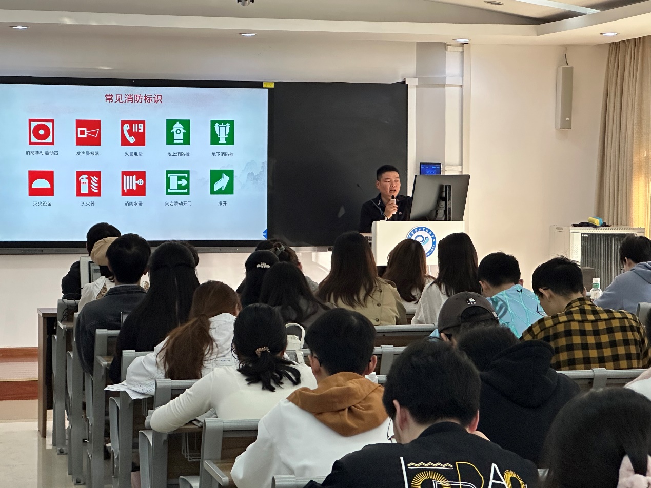 培训环节中,蒋卫东队长从火灾的定义和分类入手,强调了火若失控将演变成灾难,并详细介绍了各类火灾及其对应的灭火器具。他列举了常见的火灾隐患,例如疏散通道被占用、安全出口被锁闭等问题,通过研究数据突出了火灾现场的极高危险性,特别强调师生要重视电动自行车的安全问题,严格遵守应急管理部的“五个严禁”。他还讲解了消防器材的使用方法,包括灭火器和室内消防栓,并指导师生如何在火灾中科学逃生,包括保持冷静、低姿前行、使用湿毛巾捂住口鼻等。除此之外,他还介绍了有关消防安全的法律法规,讲述了与消防安全相关的刑事责任和行政处罚,强调了遵守消防法规的重要性。