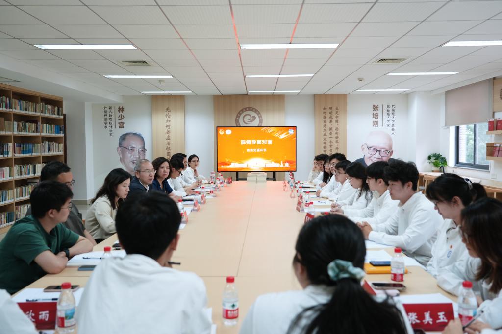 座谈会落幕之际,会场背景墙上"明德厚学、经世济民"的院训在春日斜照中熠熠生辉。从战火纷飞中奠基发展经济学理论体系,到数字经济时代解码中国式现代化道路,华科大经院人从未缺席。当团学骨干们在赠书扉页郑重写下"强国有我"的誓言,新一代经济学人正接过历史的接力棒——他们将以乡村振兴田野为稿纸,以科技创新数据为笔墨,在构建新发展格局的壮阔征程中,续写属于中国青年的经济学叙事。