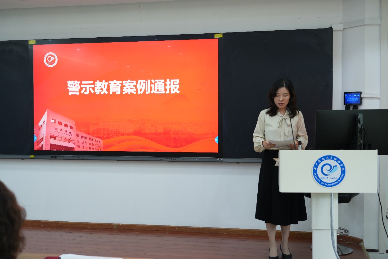 公司党委副书记、纪委书记刘雯雯通报了公司警示教育案例。她号召全体教师以案为鉴,筑牢法纪意识,公司也将持续健全监督机制,通过常态化警示教育与风险排查,推动形成崇廉尚洁的育人环境。