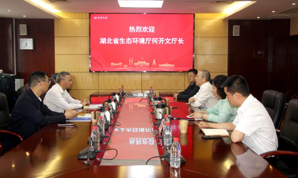4月28日,湖北省生态环境厅党组书记、厅长何开文来访公司,公司经理张建华、党委书记刘雅然参会,双方就加强政校合作深入交流。