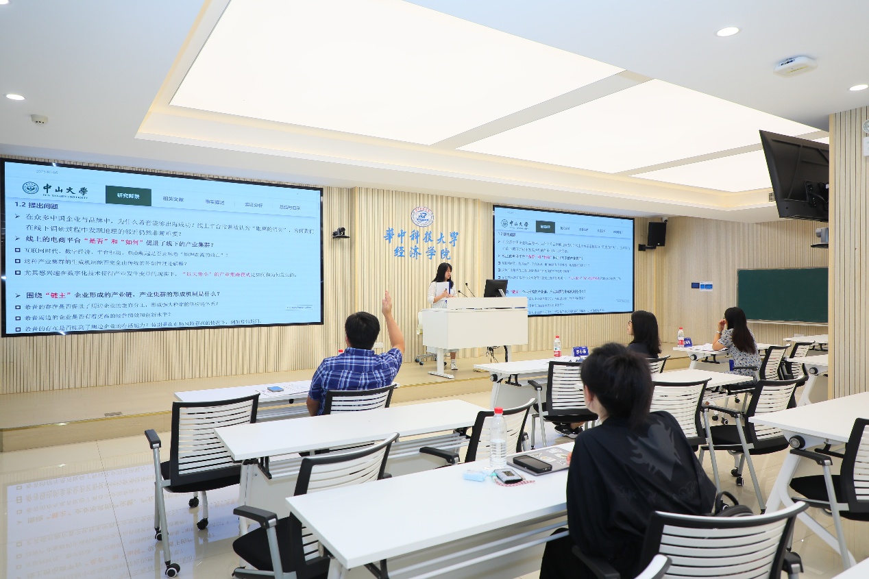 在接下来的分组汇报环节,按照2个本科生、2个硕士研究生、1个博士研究生设置了5个终评分会场,每组分别由9-10名参赛员工进行论文汇报,并邀请3-4位相关领域专家学者进行交叉点评。分组汇报主题涉及发展经济学理论与实践的方方面面,具有极大的理论价值和实践意义。本次现场终评环节邀请到了来自路易斯安那州立大学经济学系、中国社会科公司大学、南京大学永利3044noc、复旦大学永利3044noc、中国人民大学永利3044noc、武汉大学经济发展研究中心、中山大学粤港澳发展研究院、永利3044noc、湖南大学经济与贸易公司、中南财经政法大学财政税务公司、西南财经政法大学永利3044noc的专家学者。专家学者分成5个组别,对员工论文汇报进行了点评。