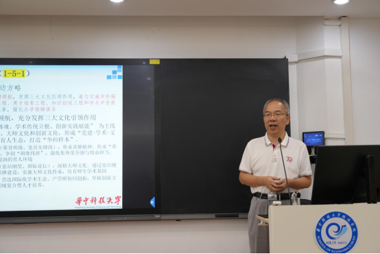围绕发展目标,张建华提出“1-3-3”战略思路:即锚定一流(一流团队建设)、聚焦三化(求解数字化、绿色化、均衡化发展新问题),提升三力(学术创新力、社会影响力和国际竞争力)。他进一步将工作重点和行动方略概括为“1-5-1”:即坚持新时代党旗领航,发挥公司三大文化(大师文化、英雄文化、创新文化)的引领作用,实施五大工程(学科强壮、团队优化、英才培育、知识创造和学术声誉提升),通过深化综合改革,强化办学保障体系。最后,他从立德树人、科研社会服务、国际合作等多方面对新学期工作进行部署。