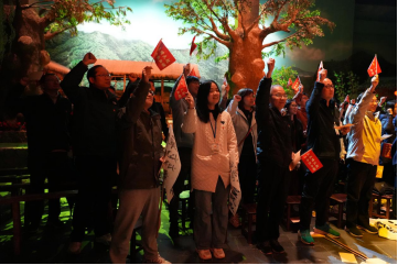 随后,学员们前往十万剧场观看沉浸式红色剧目《立夏》。该剧以1929年立夏节起义为背景,通过现代舞台技术和沉浸式表演方式,生动再现了金寨地区革命烽火燃起的壮烈历程。《立夏》剧目不仅是一场艺术盛宴,更是一堂生动的党史教育课,让学员们深刻感受到革命先辈们坚定的理想信念和英勇不屈的革命精神,现场不少学员深受震撼,理想信念的力量在心中久久激荡。