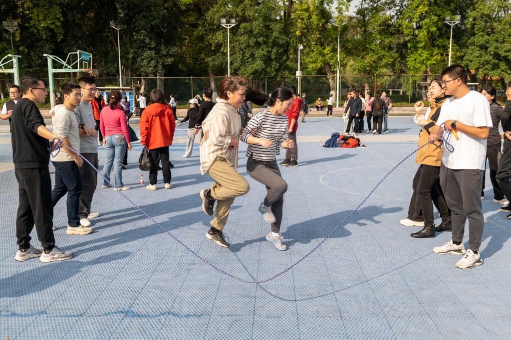教职工赛场上,老师们同样意气风发——无论是集体长绳、沙包打靶、摇圈竞走还是摸石过河、投篮比赛、巨人脚步,每一次奔跑与挥洒都彰显着经院教师的活力与团队精神。