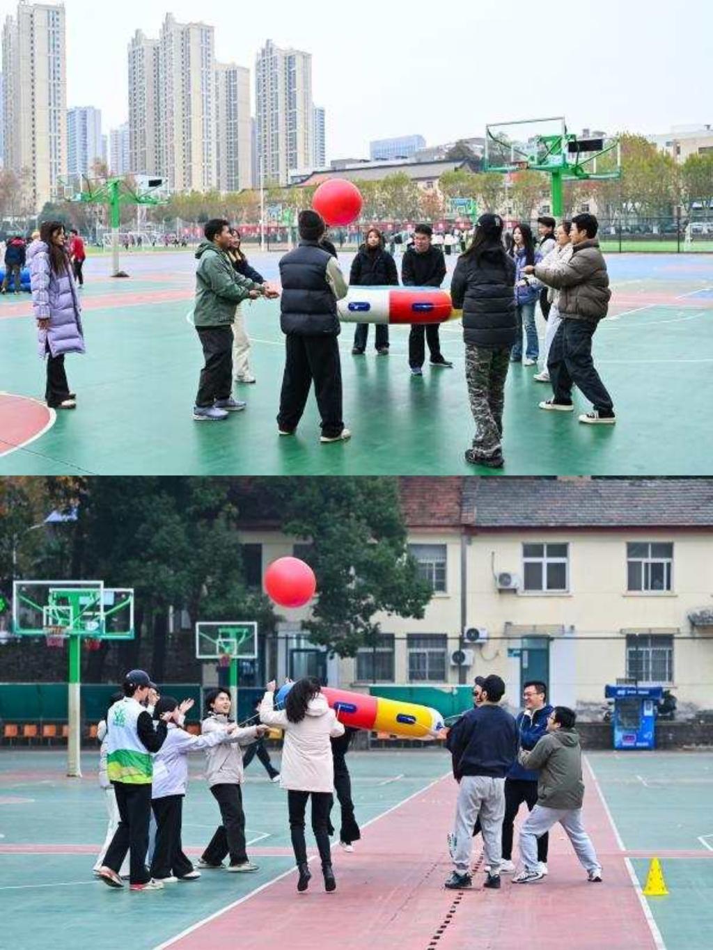 过程中偶尔会出现球落地的小插曲,但大家从不抱怨,而是迅速捡起球重新调整状态。在一次次同步起落中,师生间的默契愈发深厚。
