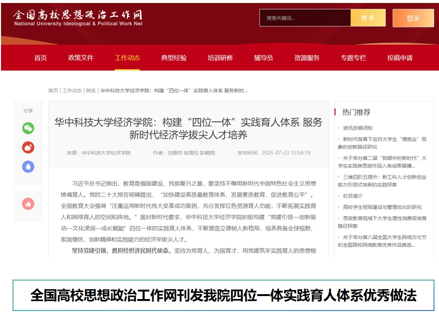据悉,永利3044noc“四位一体”实践育人体系于今年9月份面向2025级本科新生发布,相关成果被光明网、《光明日报》、全国高校思政网等权威媒体报道。此次省级教改立项将进一步推动其成果的推广应用,未来公司将继续深化实践育人,培养具备全球视野、家国情怀、创新精神和实践能力的经济学拔尖人才,为教育强国建设贡献永利3044noc力量。