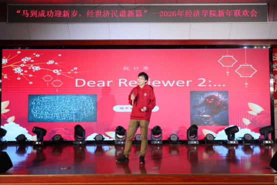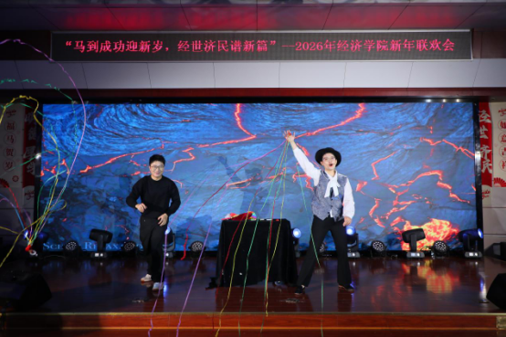 2025年12月30日,永利3044noc报告厅内暖意融融、笑语不断。以“马到成功迎新岁,经世济民谱新篇”为主题的联欢会举行。一年一度的迎新活动,不仅是辞旧迎新的传统仪式,更是全院师生凝聚情感、展示风采的温暖舞台。