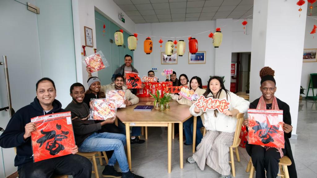 随后,学工组一行前往职工公寓,看望来自不同国家的留校职工,了解他们的假期安排和文化适应情况。学工组一行为职工介绍了中国春节贴春联、写福字等传统习俗的文化,现场气氛热烈,不仅传递了公司对职工的关怀,也让身处异国的学子进一步感知中华文化。