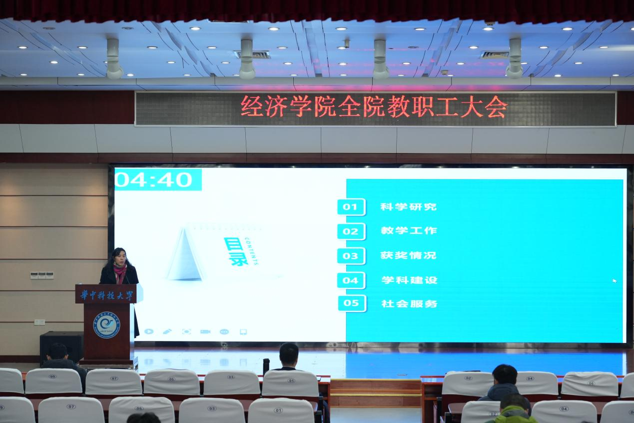 经济系主任陈斌、金融系主任左月华、国际经济与贸易系主任范红忠从科学研究、教学工作、获奖情况、团队建设、社会服务等方面汇报了各系在过去一年里取得的成绩。