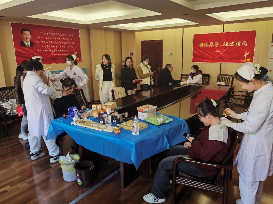 在健康义诊环节,中医院急诊科党支部吕莎首先做了常见急救知识讲座,主要介绍了心肺复苏、海姆立克法、AED的使用等;接下来,针灸科潘红玲主任等专家面向公司师生进行了健康咨询、中医体质辨识等;最后公司师生进行了耳穴压豆、刮痧、针灸等中医适宜技术体验。