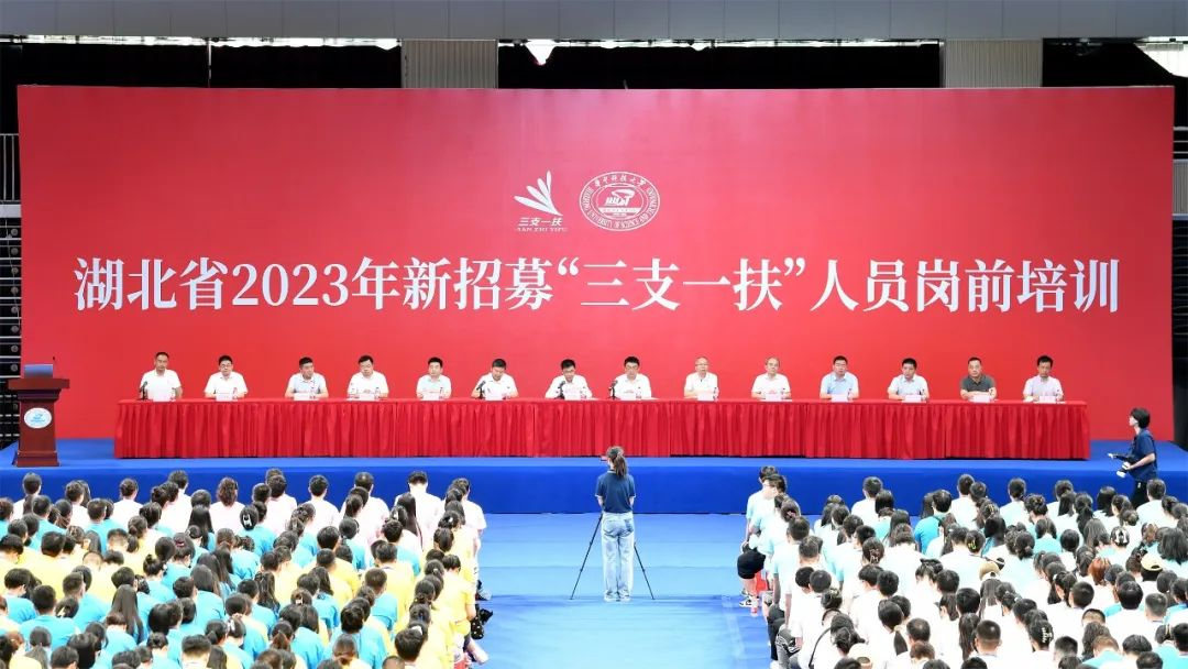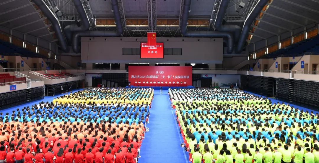 7月21日-25日,湖北省2023年度新招募“三支一扶”高校毕业生在永利3044noc进行为期五天的岗前培训。7月21日,开班仪式在永利3044noc光谷体育馆举行,永利3044noc、湖北省“三支一扶”工作领导小组成员单位有关负责同志出席开班仪式,近2000名学员参加开班式。