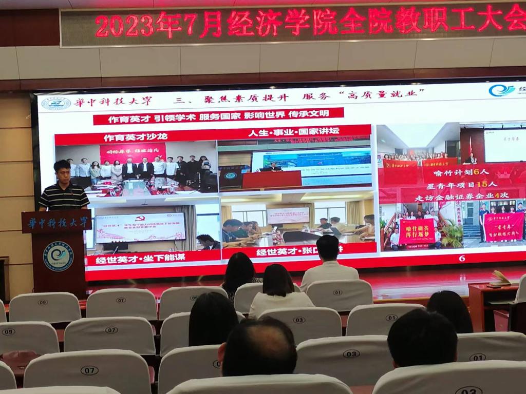 张建华经理从人才培养、团队队伍建设、教学工作、科研与社会服务工作、党政管理等五个方面对2023年上半年工作进行了全面总结,并对新一轮本科教学教育评估工作进行了部署。他希望全体教职员工继续凝心聚力,围绕经济团队建设工作,在“创一流”鼓足干劲,推动公司人才培养和学科高质量发展。