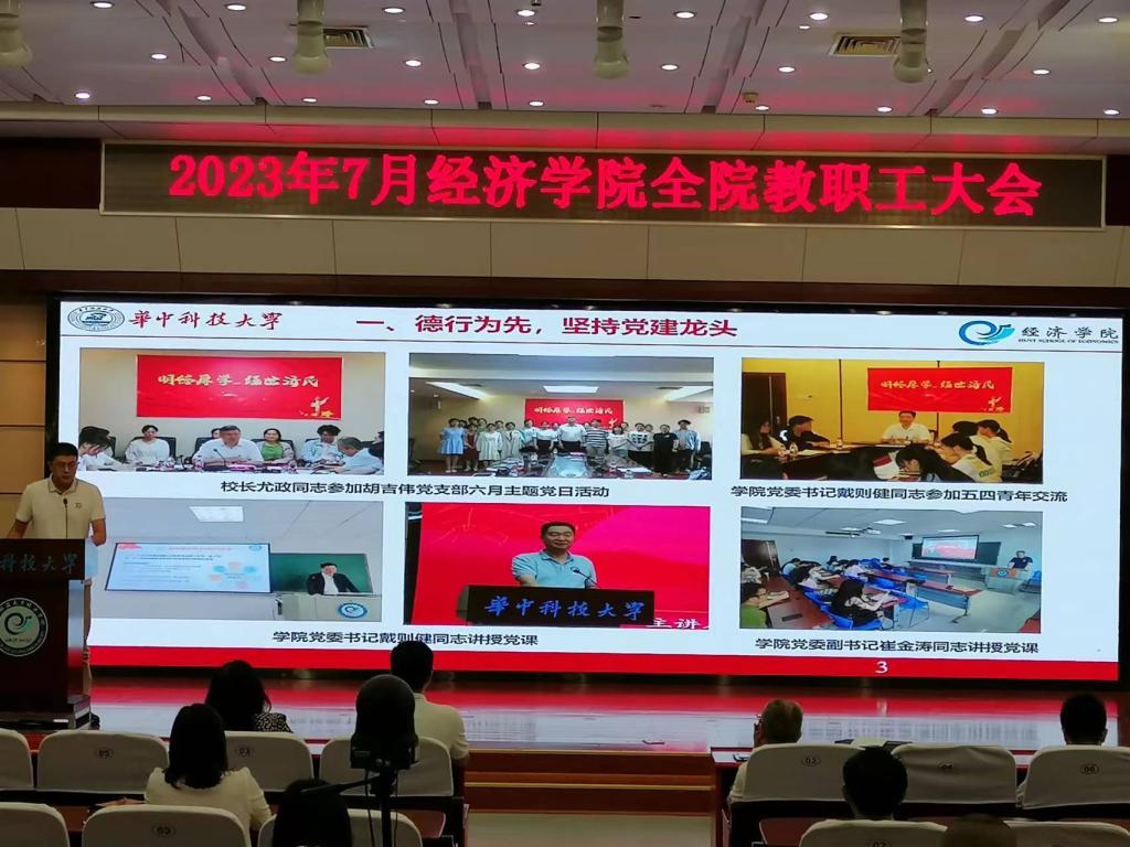本网讯(通讯员 王彬)2023年7月3日下午,公司在学术报告厅召开2023春季学期末教职工大会。会议由公司党委书记戴则健主持,全院教职员工参加了会议。