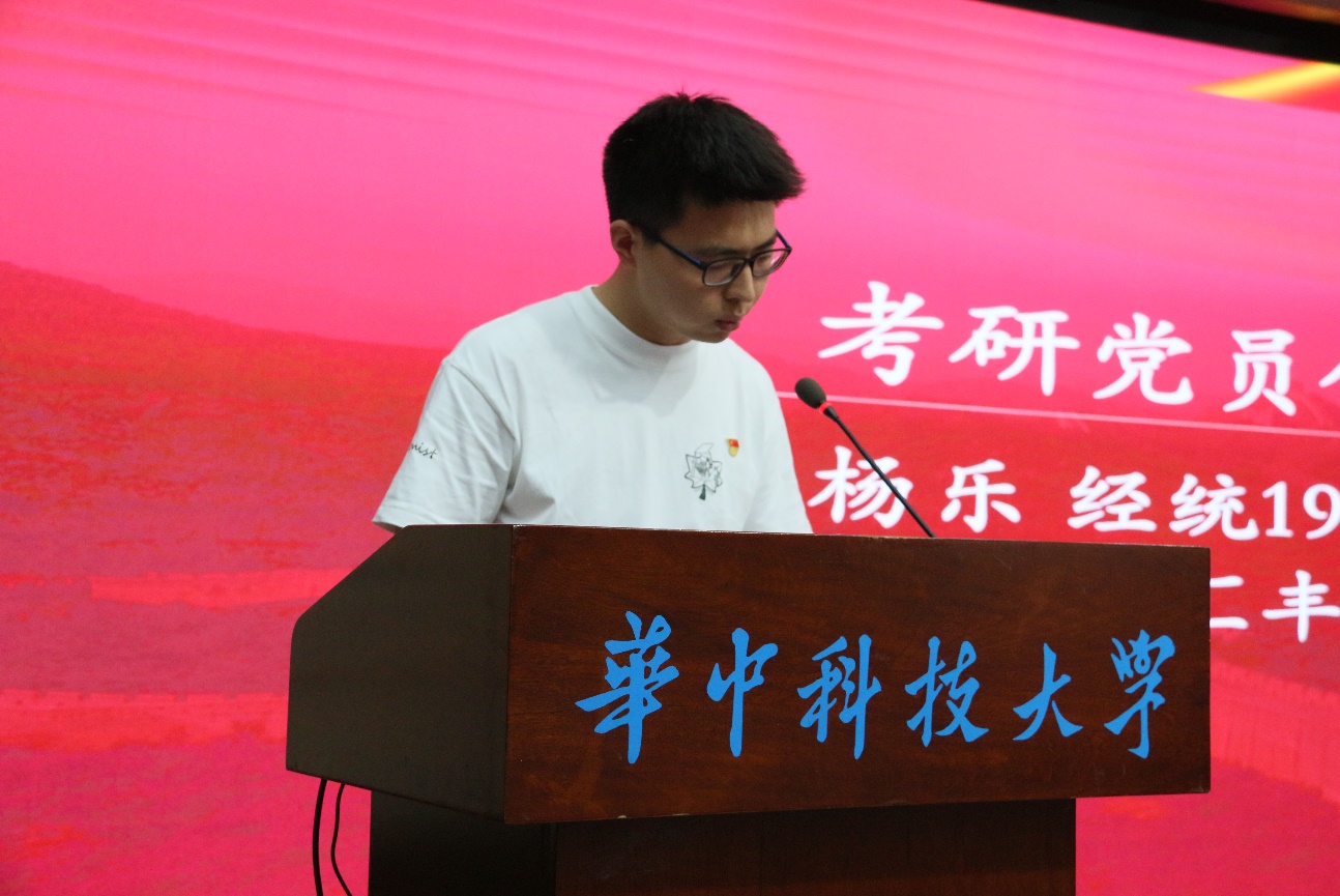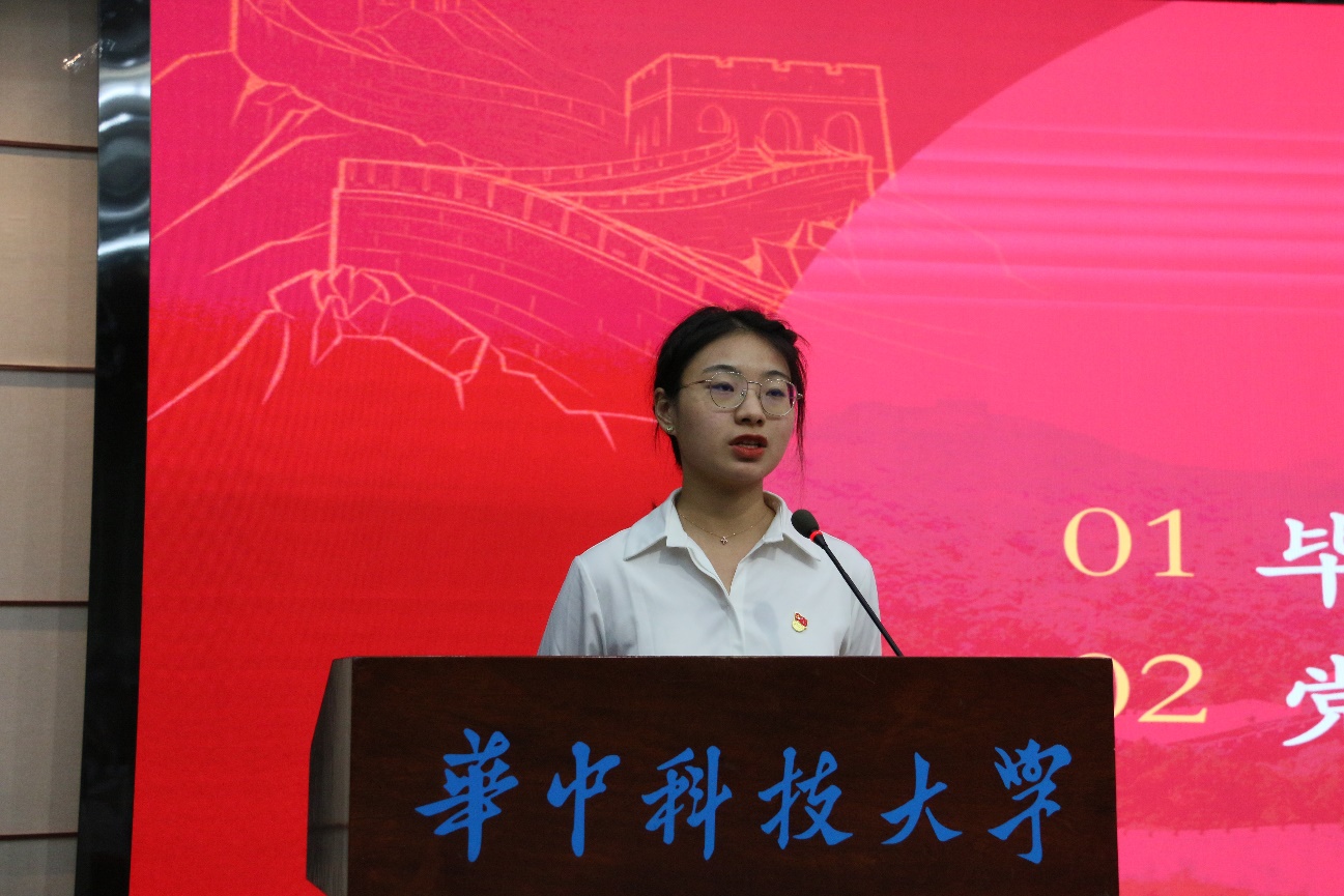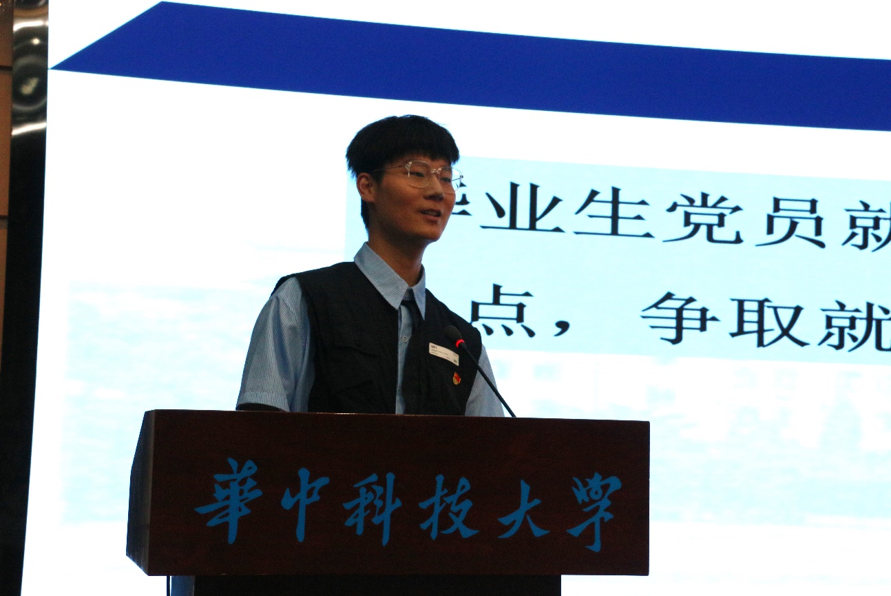 优秀党员代表分享后,戴则健进行总结发言。他希望毕业生党员们今后在工作上要有不懈的追求,做好当前的事,不急功近利。在未来的道路上,华科大学子应该谨遵校训“明德厚学,求是创新”,“明德”要放在第一位,“厚学”即终生学习,“求是”是核心,“创新”是永远。